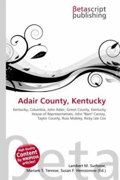 High Quality Content by WIKIPEDIA articles! High Quality Content by WIKIPEDIA articles! Adair County is a county located in the U.S. state of Kentucky. It was formed in 1802. As of 2000, the population is 17,244. Its county seat is Columbia, Kentucky. The county is named for John Adair, Governor of Kentucky 1820-24. It was formed out of Green County in 1801. Adair County also has one of the few remaining American Chestnut trees in America.