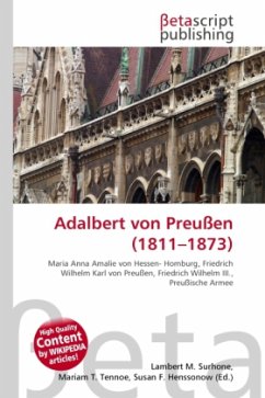 High Quality Content by WIKIPEDIA articles! High Quality Content by WIKIPEDIA articles! Prinz Heinrich Wilhelm Adalbert von Preußen ( 29. Oktober 1811 in Berlin; 6. Juni 1873 in Karlsbad) war ein Sohn von Prinzessin Marianne und Prinz Wilhelm, des jüngsten Bruders König Friedrich Wilhelms III. Adalbert trat in das preußische Heer ein und diente bei der Artillerie. Mehrere Reisen führten ihn zwischen 1826 und 1842 in die Niederlande, nach Großbritannien, Russland, in die Türkei, nach Griechenland und nach Brasilien. Prinz Adalbert entwickelte schon in jungen Jahren Interesse an Marinefragen und erkannte während seiner vielen Seereisen, welche Bedeutung Seestreitkräfte für eine moderne Handels- und Industrienation haben.