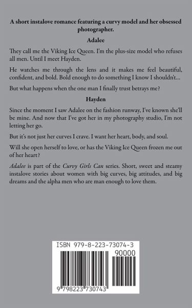 A plus size model in a steamy short instalove romance. Adalee They call me the Viking Ice Queen-a fierce, plus-size model who refuses all men. Until I meet Hayden. He watches me through the lens and it makes me feel beautiful, confident, and bold, bold enough to do something I know I shouldn't... But when the one man I let in shatters my trust, will I ever let him close again? Hayden Since the moment I saw Adalee on the fashion runway, I've known she'll be mine. And now that I've got her in my photography studio, I'm not letting her go. But it's not just her curves I crave. I want her heart, body, and soul. Will she open herself to love, or has the Viking Ice Queen frozen me out of her heart? Adalee is part of the Curvy Girls Can series-short, steamy, and swoon-worthy instalove stories featuring confident women and the men who worship them. Always high heat, always sweet, and always happily ever after. Each book is a standalone and can be read in any order. Authors note: Adalee is a short instalove story that can be read in about an hour. If you love a quickie, then dive on in! Approx word count: 11k