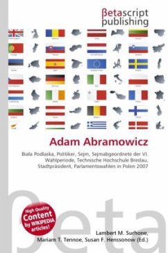 High Quality Content by WIKIPEDIA articles! High Quality Content by WIKIPEDIA articles! Adam Krzysztof Abramowicz ( 10. März 1961 in Bia a Podlaska) ist ein polnischer Politiker und seit 2007 Abgeordneter des Sejm in der VI. Wahlperiode. Er beendete sein Studium an der Fakultät für Mechanik und Organisation des Bergbaus an der Technischen Universität Lublin. Er absolvierte ein Aufbaustudium im Bereich Wasser-, Abwasser- und Abfalltechnik an der Fakultät für Sanitär-Ingenieurwesen der Technischen Hochschule Breslau. Zwischen 1998 und 2002, sowie zwischen 2006 und 2007 saß er im Stadtrat von Bia a Podlaska. Bei den Kommunalwahlen 2006 kandidierte er erfolglos für den Posten des Stadtpräsidenten in Bia a Podlaska. Bei den Parlamentswahlen 2007 wurde er für den Wahlkreis Che m mit 11.970 Stimmen über die Liste der Prawo i Sprawiedliwo (Recht und Gerechtigkeit - PiS) in den Sejm gewählt. Er ist Mitglied der Sejm Kommissionen für Wirtschaft sowie Ethnische und Nationale Minderheiten.