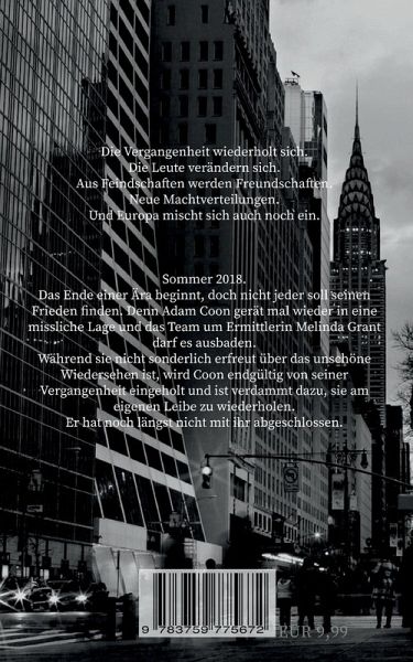 Die Vergangenheit wiederholt sich. Die Leute verändern sich. Aus Feindschaften werden Freundschaften. Neue Machtverteilungen. Und Europa mischt sich auch noch ein. Sommer 2018. Das Ende einer Ära beginnt, doch nicht jeder soll seinen Frieden finden. Denn Adam Coon gerät mal wieder in eine missliche Lage und das Team um Ermittlerin Melinda Grant darf es ausbaden. Während sie nicht sonderlich erfreut über das unschöne Wiedersehen ist, wird Coon endgültig von seiner Vergangenheit eingeholt und ist verdammt dazu, sie am eigenen Leibe zu wiederholen. Er hat noch längst nicht mit ihr abgeschlossen.