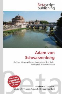 Please note that the content of this book primarily consists of articles available from Wikipedia or other free sources online. Adam Graf von Schwarzenberg, auch Schwartzenberg, ( 26. August 1583 in Gimborn in Nordrhein-Westfalen; 14. März 1641 in Spandau), war ein einflussreicher Berater des Kurfürsten Georg Wilhelm von Brandenburg und von 1625 bis 1641 Herrenmeister des Johanniterordens der Ballei Brandenburg. Der katholische Reichsgraf Adam von Schwarzenberg wurde auf dem Rittergut Gimborn in der Grafschaft Mark im Bergischen Land geboren. Als Sohn des Adolf von Schwarzenberg entstammte er der alten Adelsfamilie Schwarzenberg aus dem fränkischen Seinsheim, welche 1172 erstmals urkundlich erwähnt und 1599 in den Reichsgrafenstand erhoben wurde. Seine Mutter war Margaretha Freiin Wolff von Metternich.