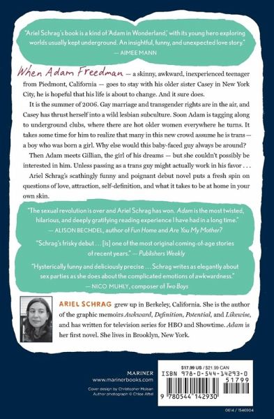 NOW A MAJOR MOTION PICTURE. A sweet and subversive coming-of-age novel by award-winning memoirist and screenwriter Ariel Schrag. When Adam Freedman?a skinny, awkward, inexperienced teenager from Piedmont, California?goes to stay with his older sister Casey in New York City, he is hopeful that his life is about to change. And it sure does. It is the summer of 2006. Gay marriage and transgender rights are in the air, and Casey has thrust herself into a wild lesbian subculture. Soon Adam is tagging along to underground clubs, where there are hot older women everywhere he turns. It takes some time for him to realize that many in this new crowd assume he is trans?a boy who was born a girl. Why else would this baby-faced guy always be around? Then Adam meets Gillian, the girl of his dreams?but she couldn't possibly be interested in him. Unless passing as a trans guy might actually work in his favor . . . Ariel Schrag's scathingly funny and poignant debut novel puts a fresh spin on questions of love, attraction, self-definition, and what it takes to be at home in your own skin. "An insightful, funny, and unexpected love story."?Aimee Mann "[An] audacious coming-of-age novel."?Miami Herald "Compulsively readable."?Bookforum "Hilarious...Schrag's riotous, poignant debut novel will leave you reeling."?SF Weekly