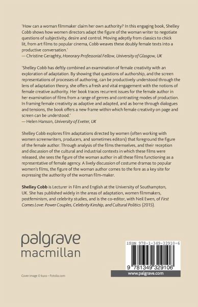 'Shelley Cobb has deftly combined an examination of female creativity with an exploration of adaptation. By showing that questions of authorship, and the screen representations of processes of authoring, can be productively understood through the lens of adaptation theory, she offers a fresh and vital engagement with the notions of female creative authority. Her book traces recurrent issues for the female author in her examination of films from a range of genres and contrasting modes of production. In framing female creativity as adaptive and adapted, and as borne through dialogues and tensions, the book offers a new frame within which female creativity on page and screen can be understood.' - Helen Hanson, University of Exeter, UK