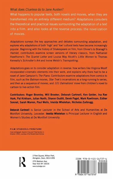 Part I Part I AN OVERVIEW Chapter 1 ADAPTATIONS, ImeldaWhelehtm Part II Part II FROM TEXT TO SCREEN Chapter 2 INTRODUCTION, DeborahCartmell Chapter 3 THE SHAKESPEARE ON SCREEN INDUSTRY, DeborahCartmell Chapter 4 CONSERVATIVE AUSTEN, RADICAL AUSTEN, JulianNorth Chapter 5 FROM EMMA TO CLUELESS, EstherSonnet Chapter 6 IMAGINING THE PURITAN BODY, RogerBromley Chapter 7 FOUR LITTLE WOMEN, PatKirkham, SarahWarren Chapter 8 WILL HOLLYWOOD NEVER LEARN?, NicholasZurbrugg Chapter 9 ADAPTING THE HOLOCAUST, MarkRawlinson Chapter 10 SPEAKING OUT, DerekPaget Part III Part III FROM SCREEN TO TEXT AND MULTIPLE ADAPTATIONS Chapter 11 INTRODUCTION, DeborahCartmell Chapter 12 ORLANDO, SharonOuditt Chapter 13 JANE CAMPION AND THE LIMITS OF LITERARY CINEMA, KenGelder Chapter 14 THE WRATH OF THE ORIGINAL CAST, Ina RaeHark Chapter 15 BATMAN, WillBrooker Chapter 16 'THOU ART TRANSLATED', PaulWells Chapter 17 'A DOGGY FAIRY TALE', ImeldaWhelehan BIBLIOGRAPHY INDEX