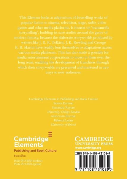 This Element looks at adaptations of bestselling works of popular fiction to cinema, television, stage, radio, video games and other media platforms. It focuses on 'transmedia storytelling', building its case studies around the genre of modern fantasy.