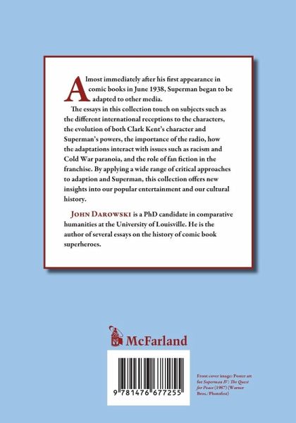 Almost immediately after his first appearance in comic books in June 1938, Superman began to be adapted to other media. The subsequent decades have brought even more adaptations of the Man of Steel, his friends, family, and enemies in film, television, comic strip, radio, novels, video games, and even a musical. The rapid adaptation of the Man of Steel occurred before the character and storyworld were fully developed on the comic book page, allowing the adaptations an unprecedented level of freedom and adaptability. The essays in this collection provide specific insight into the practice of adapting Superman from comic books to other media and cultural contexts through a variety of methods, including social, economic, and political contexts. Authors touch on subjects such as the different international receptions to the characters, the evolution of both Clark Kent's character and Superman's powers, the importance of the radio, how the adaptations interact with issues such as racism and Cold War paranoia, and the role of fan fiction in the franchise. By applying a wide range of critical approaches to adaption and Superman, this collection offers new insights into our popular entertainment and our cultural history.