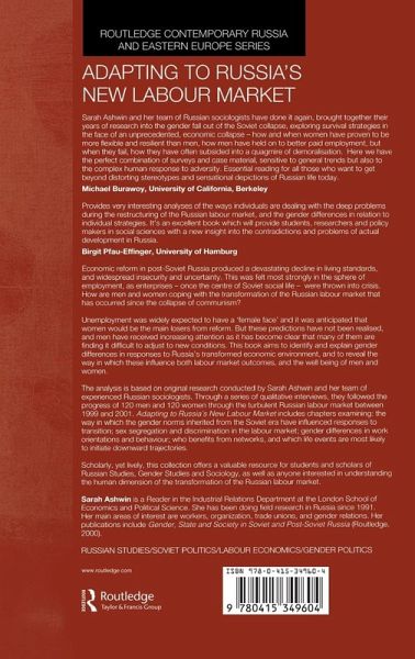 This book examines the new labour market in Russia, looking especially at how changes in the market are affecting men and women differently, and how 'coping strategies' are being developed by both men and women.