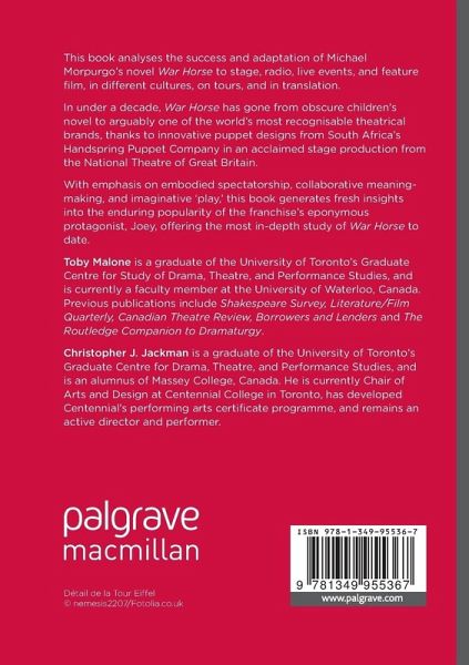 Introduction. Playing the War Horse Game.-Chapter 1. "We Get to Know Him".- Chapter 2. "Making Fit".- Chapter 3. Spectatorship as Embodied Practice.- Chapter 4. Animated Horse-Play.- Chapter 5. Emotional Promises.- Chapter 6. Tour Horse.- Works Cited.