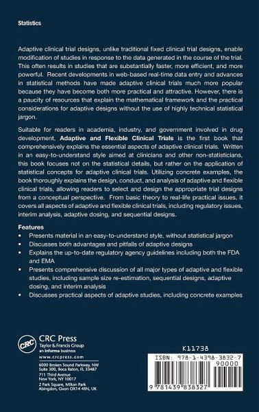Background. Background: Conventional Statistics. Statistics Used in Adaptive Clinical Trials. Specific Requirements for Adaptive Trials. Adaptive Randomization and Allocation. Sample Size Reestimation. Traditional Dosing. Adaptive Dosing. Interim Analysis and Adaptive Termination of Study and Study Arms. Adaptive Changes in Study Design and Decision Rules. Seamless Designs and Adaptive Clinical Trial Conduct. Analysis and Interpretation of Results. Index.