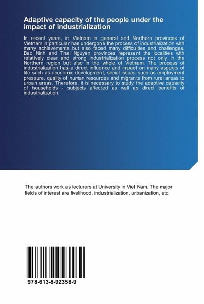 In recent years, in Vietnam in general and Northern provinces of Vietnam in particular has undergone the process of industrialization with many achievements but also faced many difficulties and challenges. Bac Ninh and Thai Nguyen provinces represent the localities with relatively clear and strong industrialization process not only in the Northern region but also in the whole of Vietnam. The process of industrialization has a direct influence and impact on many aspects of life such as economic development, social issues such as employment pressure, quality of human resources and migrants from rural areas to urban areas. Therefore, it is necessary to study the adaptive capacity of households - subjects affected as well as direct benefits of industrialization.