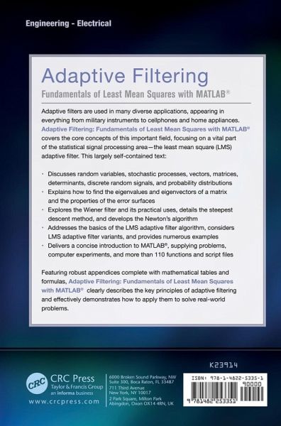 This book covers the fundamentals of adaptive filtering, with a focus on the least mean square (LMS) adaptive filter. It discusses random variables, stochastic processes, vectors, matrices, determinants, discrete random signals, and probability distributions, while delivering a concise introduction to MATLAB®-complete with problems, computer experiments, and over 110 functions and script files. The text not only addresses the basics of the LMS adaptive filter algorithm but also explores the Wiener filter and its applications, details the steepest descent method, and develops the Newton's algorithm.