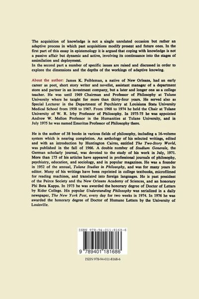 The acquisition of knowledge is not a single unrelated occasion but rather an adaptive process in which past acquisitions modify present and future ones. In Part I of this essay in epistemology it is argued that coping with knowledge is not a passive affair but dynamic and active, involving its continuance into the stages of assimilation and deployment. In Part II a number of specific issues are raised and discussed in order to explore the dimensions and the depths of the workings of adaptive knowing. ACKNOWLEDGMENTS "Activity as A Source of Knowledge" first appeared in Tulane Studies in PhilosoPhy, XII, 1963; "Knowing, Doing and Being" in Ratio, VI, 1964; "On Beliefs and Believing" in Tulane Studies, XV, 1966; "Absent Objects" in Tulane Studies, XVII, 1968; "The Reality Game" in Tulane Studies, XVIII, 1969; "Adaptive Responses and The Ecosys tem" in Tulane Studies, XVIII, 1969; "The Mind-Body Problem" in the Philosophical Journal, VII, 1970; and "The Knowledge of The Known" in the International Logic Review, I, 1970. PART I COPING WITH KNOWLEDGE CHAPTER I THE PROBLEM OF KNOWLEDGE 1. THE CHOSEN APPROACH You are about to read a study of epistemology, one which has been made from a realistic standpoint. It is not the first of such interpre tations, and it will not be the last.