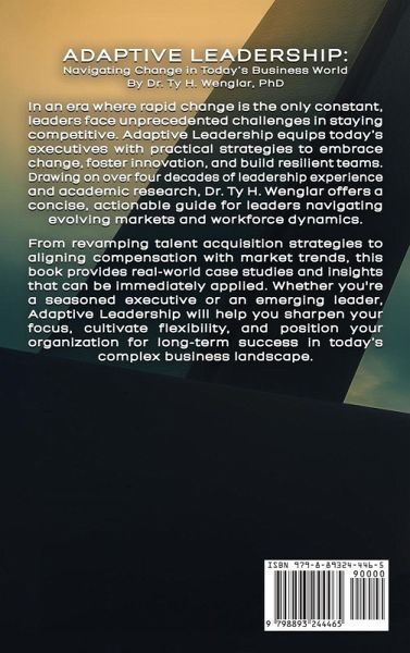 In an era where rapid change is the only constant, leaders face unprecedented challenges in staying competitive. Adaptive Leadership equips today's executives with practical strategies to embrace change, foster innovation, and build resilient teams. Drawing on over four decades of leadership experience and academic research, Dr. Ty H. Wenglar offers a concise, actionable guide for leaders navigating evolving markets and workforce dynamics. From revamping talent acquisition strategies to aligning compensation with market trends, this book provides real-world case studies and insights that can be immediately applied. Whether you're a seasoned executive or an emerging leader, Adaptive Leadership will help you sharpen your focus, cultivate flexibility, and position your organization for long-term success in today's complex business landscape.