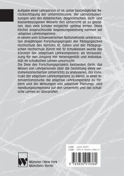 Aufgabe der Lehrperson ist es, unter bestmöglicher Berücksichtigung der Unterrichtsziele, der Lernvoraussetzungen der Schülerinnen und Schüler und des didaktischen, diagnostischen, sach- und klassenbezogenen Wissens den Unterricht so zu gestalten, dass viele Schülerinnen und Schüler möglichst optimal lernen. Diese höchst anspruchsvolle Anpassungsleistung nennen wir "'adaptive Lehrkompetenz".In einem vom Schweizerischen Nationalfonds unterstützten dreijährigen Forschungsprojekt der Pädagogischen Hochschule des Kantons St. Gallen und der Pädagogischen Hochschule Zürich mit 50 Schulklassen wurde das Konzept der "adaptiven Lehrkompetenz" als Voraussetzung für den Umgang mit Heterogenität und Individualität im schulischen Lernen untersucht.Die Ziele des Forschungsprojekts bestanden darin, das Wissen von Lehrpersonen über die Gestaltung eines verstehensorientierten Unterrichts zu analysieren, das Konstrukt der adaptiven Lehrkompetenz zu klären, in einer Interventionsstudie die adaptiveLehrkompetenz zu fördern und die Wirkungen von adaptiver Planungs- und Handlungskompetenz auf den Unterricht und das schulische Lernen zu überprüfen.