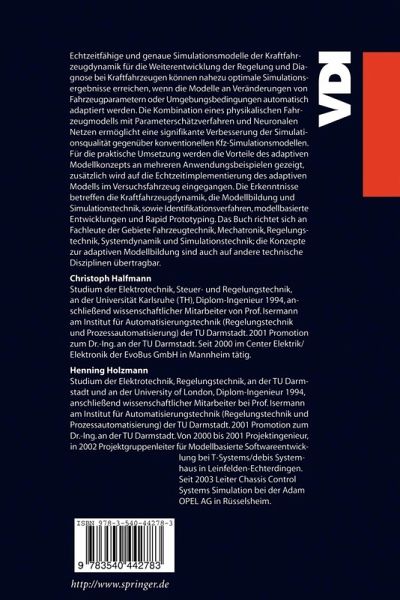 Echtzeitfähige und genaue Simulationsmodelle der Kraftfahrzeugdynamik für die Weiterentwicklung der Regelung und Diagnose bei Kraftfahrzeugen können nahezu optimale Simulationsergebnisse erreichen, wenn die Modelle an Veränderungen von Fahrzeugparametern oder Umgebungsbedingungen automatisch adaptiert werden. Die Kombination eines physikalischen Fahrzeugmodells mit Parameterschätzverfahren und Neuronalen Netzen ermöglicht eine signifikante Verbesserung der Simulationsqualität gegenüber konventionellen Kfz-Simulationsmodellen. Für die praktische Umsetzung werden die Vorteile des adaptiven Modellkonzepts an mehreren Anwendungsbeispielen gezeigt, zusätzlich wird auf die Echtzeitimplementierung des adaptiven Modells im Versuchsfahrzeug eingegangen.