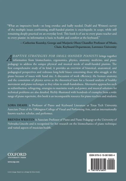 This comprehensive study offers practical strategies for overcoming the unique challenges of practicing and performing as a small-handed pianist. Informed by established scientific and pedagogical principles and illustrated by hundreds of examples, it is an incomparable resource for pianists and teachers.