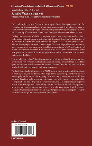 The key characteristics of AWM i.e. polycentric governance, organisational flexibility and public participation are investigated and described through a critical review of the relevant literature. The book presents an empirical case study undertaken in a selected developing-country city to investigate the potential gaps between the current water management approaches and possible implementation of AWM. Feasibility of AWM operations is examined in an environment surrounded by established water management structure with centralised governance and an institutional process based on technical flexibility. The key elements of AWM performance are (re)structured and transformed into decision support systems. Multi criteria decision models are developed to facilitate quantification and visualization of the elements derived from the case study, which is involved with water companies and water consumers.