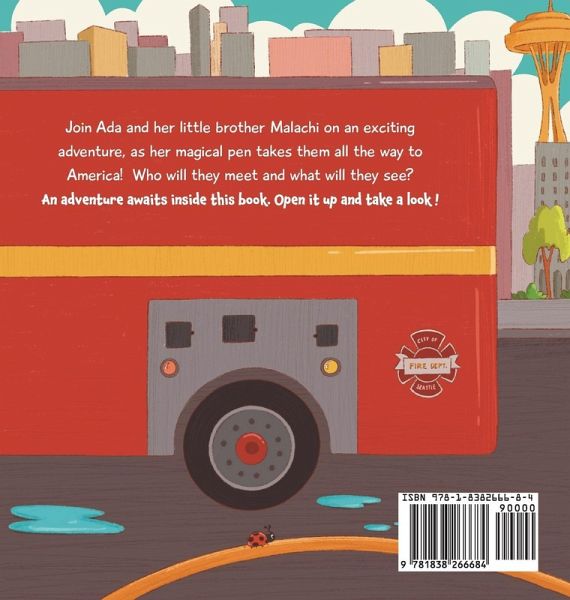 Join Ada and her little brother Malachi on an exciting adventure, as her magical pen takes them all the way to America! Who will they meet and what will they see? An adventure awaits inside this book. Open it up and take a look!