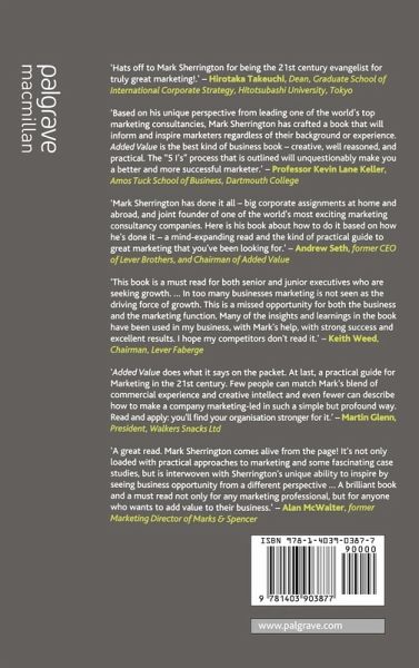 Based on his unique perspective from leading one of the world's top marketing consultancies, Mark Sherrington has crafted a book that will inform and inspire marketers regardless of their background or experience. Added Value is the best kind of business book - creative, well reasoned, and practical. The 5 I's process that is outlined will unquestionably make you a better and more successful marketer.' - Professor Kevin Lane Keller, Amos Tuck School of Business, Dartmouth College