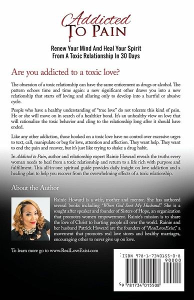 The obsession of a toxic or abusive relationship can have the same enticement as drugs or alcohol. The pattern echoes time and time again: a new significant other draws you into a new relationship that starts off loving and alluring only to develop into a hurtful or abusive cycle. People who have a healthy understanding of "true love" do not tolerate this kind of pain. He or she will move on in search of a healthier bond. It’s an unhealthy view on love that will rationalize the toxic behavior and cling to abusive relationships long after they should have ended. Like any other addiction those hooked on a toxic love and an emotionally abusive relationship; have no control over excessive urges to text, call, manipulate or beg for love, attention and affection. They want help. They want to end the pain and recover, but it’s just like trying to shake a drug habit. Ranked one of the top bestseller abusive relationship books, Addicted to Pain reveals the truths every woman needs to heal from a toxic relationship and return to a life rich with purpose and fulfillment. Relationship expert Rainie Howard writes this all-in-one spiritual guide to provide daily insight on toxic love addiction and a healing plan to help you recover from the overwhelming effects of an abusive relationship. Learn how to get over a guy and heal from all abuse including: The verbally abusive relationship Emotionally abusive relationship Spiritual and physical abusive relationship Rainie has authored several books on relationships and is sought after as a conference speaker. If you’ve been seeking books for women and break up books to help you gain restoration from a separation, abusive relationship or divorce this is the book for you!