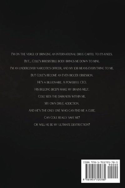 I'm on the verge of bringing an international drug cartel to its knees. But... Cole's irresistible body brings me down to mine. I'm an undercover narcotics officer, and my job means everything to me. But Cole's become an even bigger obsession. He's a billionaire. A powerful CEO. His bulging biceps make my brains melt. Cole sees the darkness within me. My own drug addiction. And he's the only one who can find me a cure. Can Cole really save me? Or will he be my ultimate destruction?