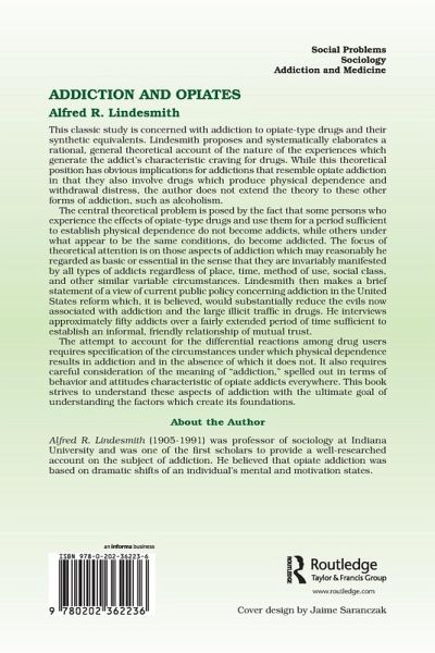 This classic study is concerned with addiction to opiate-type drugs and their synthetic equivalents. Lindesmith proposes and systematically elaborates a rational, general theoretical account of the nature of the experiences which generate the addict's characteristic craving for drugs. While this theoretical position has obvious implications for addictions that resemble opiate addiction in that they also involve drugs which produce physical dependence and withdrawal distress, the author does not extend the theory to these other forms of addiction, such as alcoholism.The central theoretical problem is posed by the fact that some persons who experience the effects of opiate-type drugs and use them for a period sufficient to establish physical dependence do not become addicts, while others under what appear to be the same conditions do become addicted. The focus of theoretical attention is on those aspects of addiction which may reasonably he regarded as basic or essential in the sense that they are invariably manifested by all types of addicts regardless of place, time, method of use, social class, and other similar variable circumstances. Lindesmith then makes a brief statement of a view of current public policy concerning addiction in the United States reform which, it is believed, would substantially reduce the evils now associated with addiction and the large illicit traffic in drugs. He interviews approximately fifty addicts over a fairly extended period of time sufficient to establish an informal, friendly relationship of mutual trust.The attempt to account for the differential reactions among drug users requires specification of the circumstances under which physical dependence results in addiction and in the absence of which it does not. It also requires careful consideration of the meaning of "addiction," spelled out in terms of behavior and attitudes characteristic of opiate addicts everywhere. This book strives to understand these aspects of addiction with the ultimate goal of understanding the factors which create its foundations. This classic work has much to say about contemporary addiction.