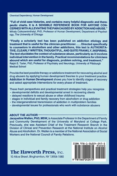 Find fresh perspectives on the treatment of addictions and effective methods for helping recovering alcohol and drug abusers in this valuable book. Addiction in Human Development provides practical strategies based on theories of human development for working with clients recovering from alcoholism and drug addiction. An understanding of these theories will help therapists and addictions counselors recognize stages of recovery and better select appropriate interventions for every phase of treatment of addicted clients.