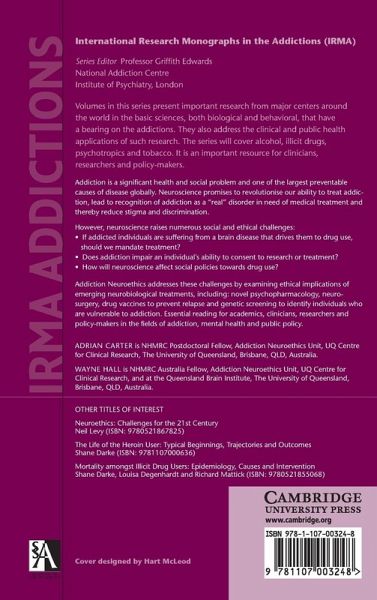 Addiction is a significant health and social problem and one of the largest preventable causes of disease globally. Neuroscience promises to revolutionise our ability to treat addiction, lead to recognition of addiction as a 'real' disorder in need of medical treatment and thereby reduce stigma and discrimination. However, neuroscience raises numerous social and ethical challenges: ¿ If addicted individuals are suffering from a brain disease that drives them to drug use, should we mandate treatment? ¿ Does addiction impair an individual's ability to consent to research or treatment? ¿ How will neuroscience affect social policies towards drug use? Addiction Neuroethics addresses these challenges by examining ethical implications of emerging neurobiological treatments, including: novel psychopharmacology, neurosurgery, drug vaccines to prevent relapse, and genetic screening to identify individuals who are vulnerable to addiction. Essential reading for academics, clinicians, researchers and policy-makers in the fields of addiction, mental health and public policy.