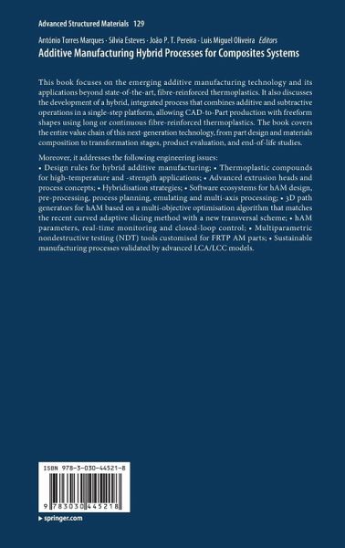 This book focuses on the emerging additive manufacturing technology and its applications beyond state-of-the-art, fibre-reinforced thermoplastics. It also discusses the development of a hybrid, integrated process that combines additive and subtractive operations in a single-step platform, allowing CAD-to-Part production with freeform shapes using long or continuous fibre-reinforced thermoplastics. The book covers the entire value chain of this next-generation technology, from part design and materials composition to transformation stages, product evaluation, and end-of-life studies.