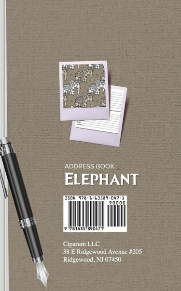 Address Book Elephant: is a book of addresses! You can now store the contact information of your loved ones, friends, business contacts, doctorís office, service providers etc; in one easy to access format. But wait, thereís more! This pocket size Address book SAVES YOU TIME! You donít have to flip pages endlessly for a name or address. No! Our pages are numbered. All you need to do is write the information. Next time you need the phone number or address of John Doe, look up the page number in the table of content and go directly to that page, Easy! Get your pocket-sized Address Book now and become more efficient.