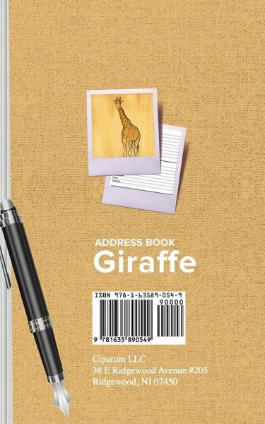 Address Book Giraffe: is a book of addresses! You can now store the contact information of your loved ones, friends, business contacts, doctorís office, service providers etc; in one easy to access format. But wait, thereís more! This pocket size Address book SAVES YOU TIME! You donít have to flip pages endlessly for a name or address. No! Our pages are numbered. All you need to do is write the information. Next time you need the phone number or address of John Doe, look up the page number in the table of content and go directly to that page, Easy! Get your pocket-sized Address Book now and become more efficient.