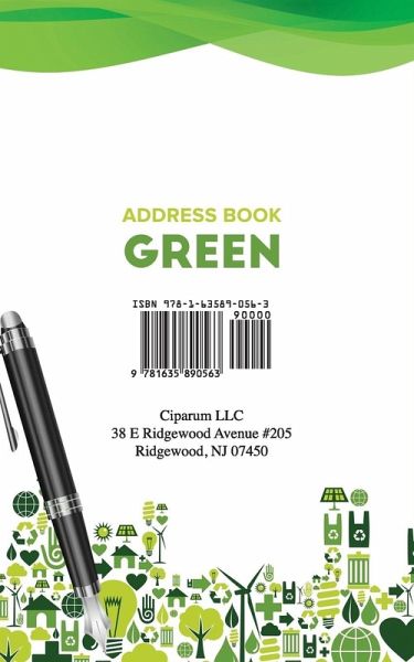 Address Book Green:is a book of addresses! You can now store the contact information of your loved ones, friends, business contacts, doctorís office, service providers etc; in one easy to access format. But wait, thereís more! This pocket size Address book SAVES YOU TIME! You donít have to flip pages endlessly for a name or address. No! Our pages are numbered. All you need to do is write the information. Next time you need the phone number or address of John Doe, look up the page number in the table of content and go directly to that page, Easy! Get your pocket-sized Address Book now and become more efficient.