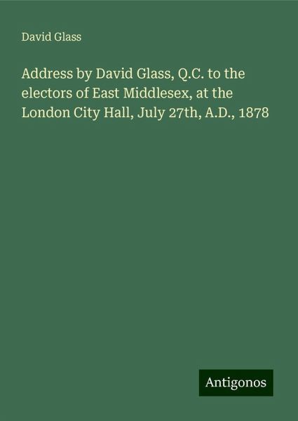 Address by David Glass, Q.C. to the electors of East Middlesex, at the London City Hall, July 27th, A.D., 1878 - Glass, David