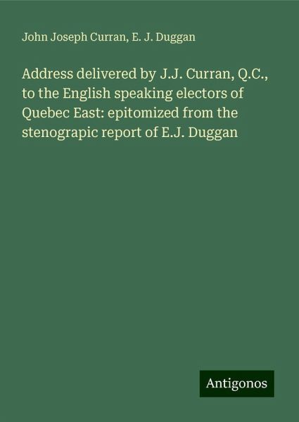 Address delivered by J.J. Curran, Q.C., to the English speaking electors of Quebec East: epitomized from the stenograpic report of E.J. Duggan - Curran, John Joseph; Duggan, E. J.