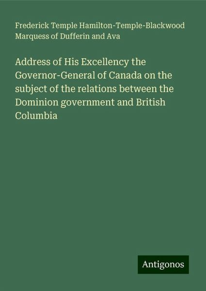 Address of His Excellency the Governor-General of Canada on the subject of the relations between the Dominion government and British Columbia - Dufferin and Ava, Frederick Temple Hamilton-Temple-Blackwood Marquess of