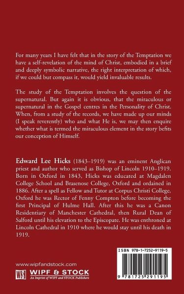 For many years I have felt that in the story of the Temptation we have a self-revelation of the mind of Christ, embodied in a brief and deeply symbolic narrative, the right interpretation of which, if we could but compass it, would yield invaluable results. The study of the Temptation involves the question of the supernatural. But again it is obvious, that the miraculous or supernatural in the Gospel centres in the Personality of Christ. When, from a study of the records, we have made up our minds (I speak reverently) who and what He is, we may then enquire whether what is termed the miraculous element in the story befits our conception of Himself.