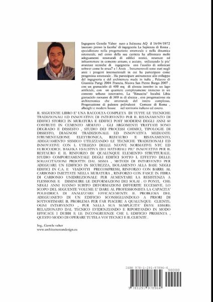 Il seguente libro riassume tutte le tipologie di degrado e dissesto di cui un edificio puo' essere sottoposto nel corso degli anni, i metodi di indagine di ultima generazione e le modalita' di intervento dal semplice restauro al' adeguamento strutturale al sisma utilizzando le nuove normative NTC ed Eurocodice. il volume fornisce un ampia gamma di materiali da utilizzare caso per caso e le modalita' di posa, descivendo nel dettaglio tutto il processo esecutivo. oltre a questo l autore ha affrontato il vasto spettro del dissesto di una struttura e le modalita' di intervento, studio della geologia e geotecnica, adeguamenti delle fondazioni esistenti e interventi di consolidamento nei terreni circostanti mediante la tecnica dei micropali in cls o resine appropriate. il seguente volume e' utile oltre che per un progettista anche a per le piccole e medio imprese che si cimentano nel complicato mondo del restauro e adeguamento di edifici esistenti. Tot pagine 330