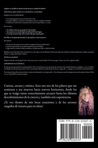 ¿Alguna vez un libro te abrazó tan fuerte que te cambió los latidos? Adela Neón y el gato cuántico no es una historia, es un hechizo. Imaginá cruzar un umbral donde:Las madres guardan secretos en latas de té vacías. Los gatos hablan en ecuaciones y los jardines susurran verdades incómodas. Cada trenza verde neón es un puente hacia universos que duelen... y sanan. Para vos, que:Te rebelás contra los manuales de "buena hija". Sos experta en esconder lágrimas debajo del rimel negro. Creés que el amor duele más cuando calla que cuando grita. Este libro es el espejo que buscabas (y que quizás te asuste un poco). Descubrirás:Por qué las discusiones con tu madre son agujeros de gusano disfrazados. Cómo un gato puede ser tu mejor terapeuta (y peor enemigo). Qué tienen en común las hadas modernas y las pibas que tiñen su rabia de colores. Bifurkhaas (con h de hada, héroe y huracán) no es una saga: es un movimiento. Para las que saben que cambiar el mundo empieza por romper sus propias cadenas... aunque duela dejar cicatrices. ¿El efecto secundario? Después de leerlo, verás las grietas de tu vida como rutas, no como heridas. Y las rosas negras... bueno, esas te las explicará Adela. ADVERTENCIA CUÁNTICA: No apto para las que prefieren mundos perfectos. Pero si sos de las que creen que hasta los corazones rotos pueden iluminar oscuridades... este es tu boleto a la rebelión más hermosa que existe: la de ser una humana híbrida con hada, bruja, hechicera, maga, elfa... y cualquier ser maravilloso del mundo feérico. Tu yo futuro (el que lleva trenzas de luz y cicatrices de diamante) te está esperando... ¿Vas a dejar pasar mucho tiempo más antes de pasarlo a buscar? Mirá si se va y lo perdés de vista para siempre...