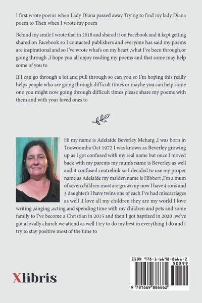 I first wrote poems when Lady Diana passed away Trying to find my lady Diana poem to Then when I wrote my poem Behind my smile I wrote that in 2018 and shared it on Facebook and it kept getting shared on Facebook so I contacted publishers and everyone has said my poems are inspirational and so I've wrote what's on my heart ,what I've been through,or going through ,I hope you all enjoy reading my poems and that some may help some of you to If I can go through a lot and pull through so can you so I'm hoping this really helps people who are going through difficult times or maybe you can help some one you might now going through difficult times please share my poems with them and with your loved ones to