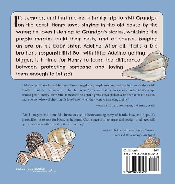 It's summer, and that means a family trip to visit Grandpa on the coast! Henry loves staying in the old house by the water; he loves listening to Grandpa's stories, watching the purple martins build their nests, and of course, keeping an eye on his baby sister, Adeline. After all, that's a big brother's responsibility! But with little Adeline getting bigger, is it time for Henry to learn the difference between protecting someone and loving them enough to let go?