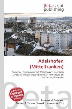 Please note that the content of this book primarily consists of articles available from Wikipedia or other free sources online. Adelshofen ist eine Gemeinde im mittelfränkischen Landkreis Ansbach und Mitglied der Verwaltungsgemeinschaft Rothenburg ob der Tauber. Adelshofen liegt in der Region Westmittelfranken im Taubertal. Nachbargemeinden sind (im Norden beginnend im Uhrzeigersinn) Uffenheim, Ohrenbach, Steinsfeld, Creglingen und Simmershofen. Es existieren folgende Gemarkungen: Adelshofen, Großharbach, Neustett, Tauberscheckenbach, Tauberzell.
