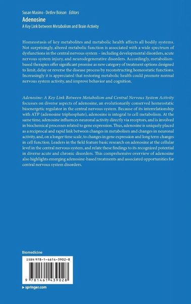 Adenosine: A Key Link Between Metabolism and Central Nervous System Activity focusses on diverse aspects of adenosine, an evolutionarily conserved homeostatic bioenergetic regulator in the central nervous system. Because of its interrelationship with ATP (adenosine triphosphate), adenosine is integral to cell metabolism. Atthe same time, adenosine influences neuronal activity directly via receptors, and is involved in biochemical processes related to gene expression. Thus, adenosine is uniquely placed as a reciprocal and rapid link between changes in metabolism and changes in neuronal activity, and, on a longer time scale, to changes in gene expression and long term changes in cell function. Leaders in the field feature basic research on adenosine at the cellular level in the central nervous system, and relate these findings to its recognized potential in diverse acute and chronic disorders. This comprehensive overview of adenosine also highlights emerging adenosine-based treatments and associated opportunities for central nervous system disorders.