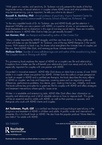 "Tuckman's latest book addresses an important subject that is not often talked about: the impact of ADHD on people's sex and love lives. His work begins an important and much-needed conversation, and it offers practical advice and guidance to couples that can help them effectively navigate challenges and foster happier and healthier sex lives and relationships."