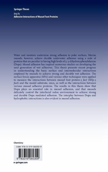 Water and moisture undermine strong adhesion to polar surfaces. Marine mussels, however, achieve durable underwater adhesion using a suite of proteins that are peculiar in having high levels of 3, 4-dihydroxyphenylalanine (Dopa). Mussel adhesion has inspired numerous studies on developing the next generation of wet adhesives. This thesis presents recent progress in understanding the basic surface and intermolecular interactions employed by mussels to achieve strong and durable wet adhesion. The surface forces apparatus (SFA) and various other techniques were applied to measure the interactions…mehr