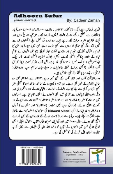 Adhoora Safar is a collection of 20 Urdu short stories written by Qadeer Zaman. ¿¿¿¿¿¿¿ ¿¿¿ '¿¿¿ ¿¿ ¿¿¿ (1976¿)' ¿¿¿ '¿¿¿¿¿¿ ¿¿¿ (1990¿)' ¿¿¿¿¿¿¿ ¿¿ ¿¿¿¿ ¿¿¿¿ ¿¿ ¿¿ ¿¿¿¿¿¿ ¿¿¿¿ ¿¿¿¿¿ ¿¿¿¿¿¿¿ ¿¿¿ ¿¿¿ '¿¿¿¿¿ (1997¿)' ¿¿¿ '¿¿¿¿¿ ¿¿ ¿¿¿¿ (1987¿)' ¿¿ ¿¿¿¿¿¿ ¿¿¿¿ [Edward Albee] ¿¿ "¿¿ ¿¿ ¿¿¿¿¿¿" ¿¿ ¿¿¿¿¿ ¿¿¿ ¿¿¿¿ ¿¿ ¿¿¿ ¿¿¿¿ ¿¿¿¿¿ ¿¿ ¿¿¿¿ ¿¿¿¿ ¿¿¿¿ ¿¿ ¿¿¿¿¿ ¿¿ ¿¿ ¿¿¿ ¿¿¿¿¿ ¿¿¿¿¿ ¿¿¿ ¿¿¿¿¿ ¿¿¿ 2000 ¿¿¿ ¿¿ ¿¿ ¿¿¿ ¿¿¿¿¿ ¿¿¿¿¿ ¿¿¿¿ "¿¿¿¿ ¿¿¿¿¿" ¿¿¿ ¿¿¿¿ ¿¿¿¿ ¿¿ ¿¿¿ ¿¿¿¿¿ ¿¿ ¿¿¿¿¿ ¿¿ ¿¿¿¿ ¿¿¿¿ ¿¿¿¿ ¿¿ ¿¿¿¿¿¿ ¿¿ ¿¿¿¿ ¿¿ ¿¿ ¿¿¿¿¿ ¿¿¿¿¿ ¿¿¿ ¿¿¿¿ ¿¿ ¿¿¿¿ ¿¿ ¿¿¿