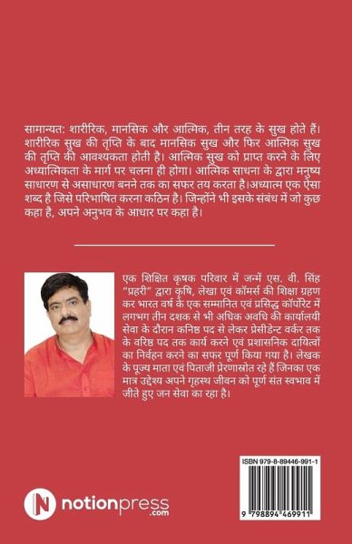 Generally there are three types of happiness: physical, mental and spiritual. After satisfaction of physical happiness, there is a need for mental happiness and then satisfaction of spiritual happiness. To attain spiritual happiness, one has to follow the path of spirituality. Through spiritual practice, man travels from ordinary to extraordinary. Spirituality is a word which is difficult to define. Whoever has said anything in this regard has said it on the basis of his experience. As we know that spirituality is made up of two letters: Adhya + Atma, that is, it simply means to study oneself. That means knowing within yourself. These subtle aspects of spirituality have been quoted by the author in this book.