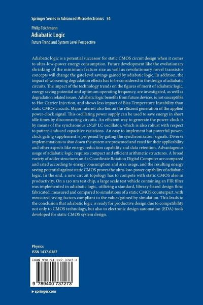 Adiabatic logic is a potential successor for static CMOS circuit design when it comes to ultra-low-power energy consumption. Future development like the evolutionary shrinking of the minimum feature size as well as revolutionary novel transistor concepts will change the gate level savings gained by adiabatic logic. In addition, the impact of worsening degradation effects has to be considered in the design of adiabatic circuits. The impact of the technology trends on the figures of merit of adiabatic logic, energy saving potential and optimum operating frequency, are investigated, as well as degradation related issues. Adiabatic logic benefits from future devices, is not susceptible to Hot Carrier Injection, and shows less impact of Bias Temperature Instability than static CMOS circuits. Major interest also lies on the efficient generation of the applied power-clock signal. This oscillating power supply can be used to save energy in short idle times by disconnecting circuits. An efficient way to generate the power-clock is by means of the synchronous 2N2P LC oscillator, which is also robust with respect to pattern-induced capacitive variations. An easy to implement but powerful power-clock gating supplement is proposed by gating the synchronization signals. Diverse implementations to shut down the system are presented and rated for their applicability and other aspects like energy reduction capability and data retention. Advantageous usage of adiabatic logic requires compact and efficient arithmetic structures. A broad variety of adder structures and a Coordinate Rotation Digital Computer are compared and rated according to energy consumption and area usage, and the resulting energy saving potential against static CMOS proves the ultra-low-power capability of adiabatic logic. In the end, a new circuit topology has to compete with static CMOS also in productivity. On a 130nm test chip, a large scale test vehicle containing an FIR filter was implemented in adiabatic logic, utilizing a standard, library-based design flow, fabricated, measured and compared to simulations of a static CMOS counterpart, with measured saving factors compliant to the values gained by simulation. This leads to the conclusion that adiabatic logic is ready for productive design due to compatibility not only to CMOS technology, but also to electronic design automation (EDA) tools developed for static CMOS system design.
