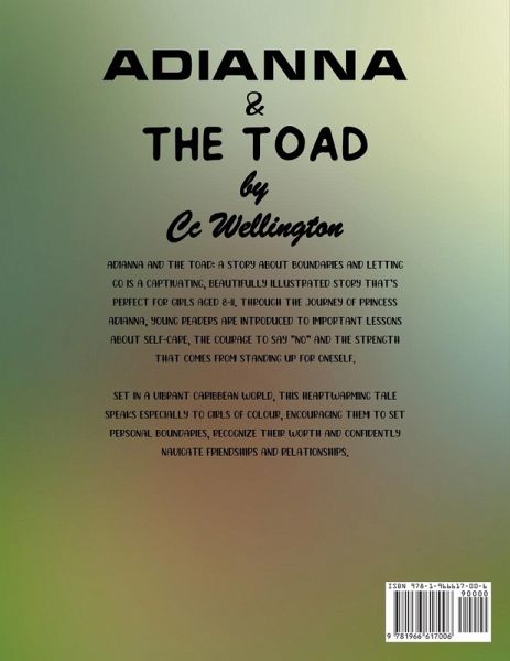 What happens when kindness turns into sacrifice, and selflessness becomes a burden? In Adianna and the Toad, young readers embark on a magical journey set in the lush Caribbean, where Princess Adianna learns a powerful lesson: true strength comes from within. Adianna and the Toad is a beautifully illustrated tale that teaches young girls 8-11, the importance of self-care, the courage to let go, and the strength to stand up for themselves. This heartwarming story offers an empowering message for children, especially girls of colour, and encourages them to embrace their worth. Don't miss the chance to share a story that will inspire your child to embrace their strength, understand their worth, and navigate friendships with confidence. With its vibrant illustrations and heartfelt message, Adianna and the Toad: A Story About Boundaries and Letting Go is the perfect addition to any bookshelf. Empower your child today with this unforgettable tale of kindness, courage, and the power of letting go!