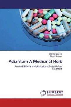 Adiantum is well-known for its medicinal properties. It contains compounds like triterpenes, flavonoids, carotenes, and phenylpropanoides. Apart from that, chemical compounds like rutin, isoqercetin, quinic acid, and astragalin have been reported for their anticancer, antiviral, choleretic, antileukemic activities respectively. Its frond extracts and volatile compounds are known for their antimicrobial activity. It is used to treat urinary disorders, cough and cold, etc. In India, the plant is used for hypoglycemia diabetes, monitoring blood sugar level, cough and cold, bronchial diseases, skin diseases, fever etc. In this book the organic and inorganic constituents, antioxidants and antidiabetic properties of Adiantum have been elucidated. The dimeric protein 15.0 kDa and 15.5 kDa protein isolated from Adiantum was found to be more effective than Acarbose, a marketed tablet (Glucobay), so it can be used as an alternative drug for diabetic treatment. Among the species of Adiantum, A. aethiopicum L. has emerged as plant species containing effective human salivary amylase inhibitor and good amount of secondary metabolites with substantial radical scavenging activity.